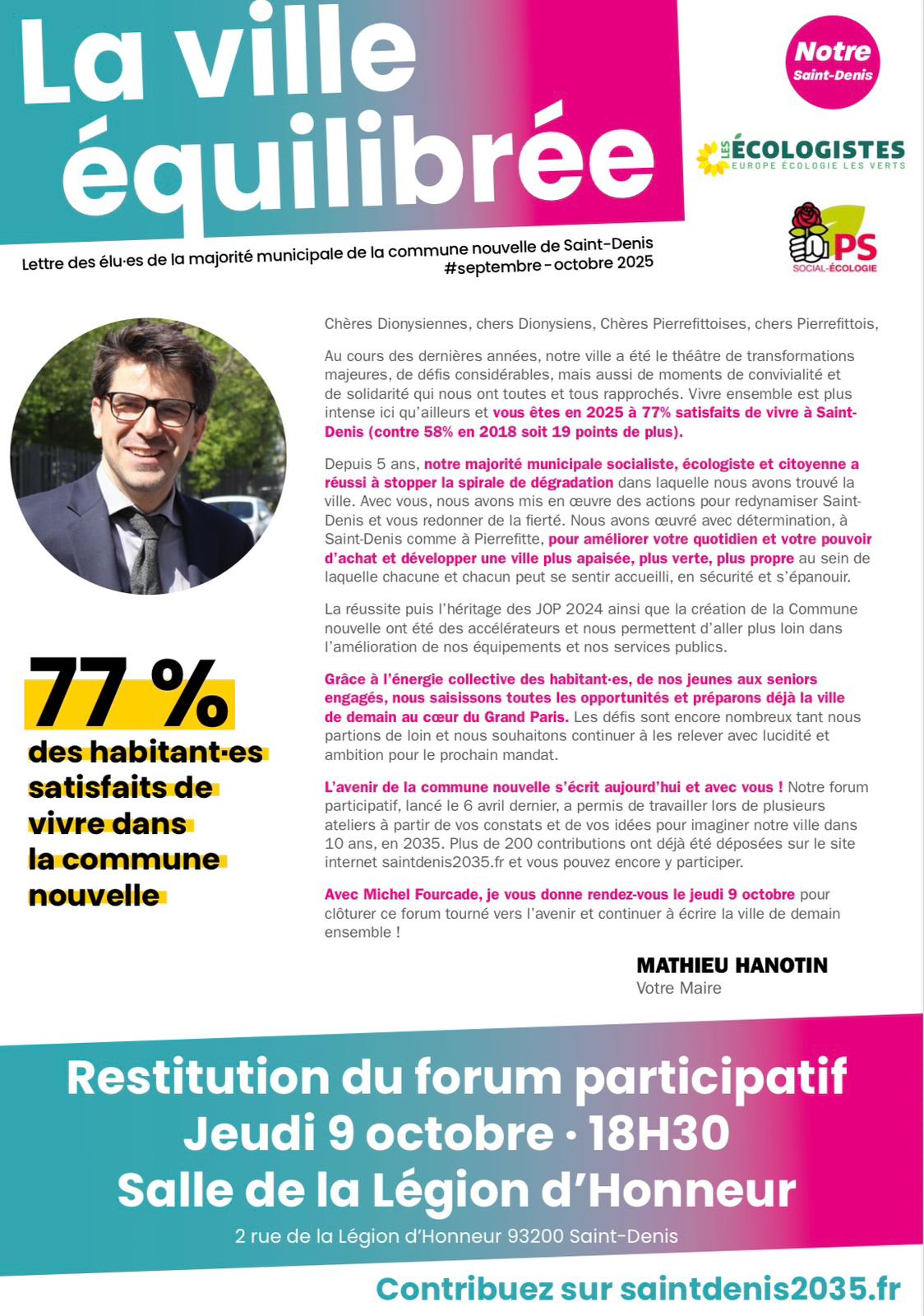 Depuis 2008 à Pierrefitte-sur-Seine et 2020 à Saint-Denis, nos majorités municipales socialistes, écologistes et citoyennes transforment nos villes avec vous et pour vous.